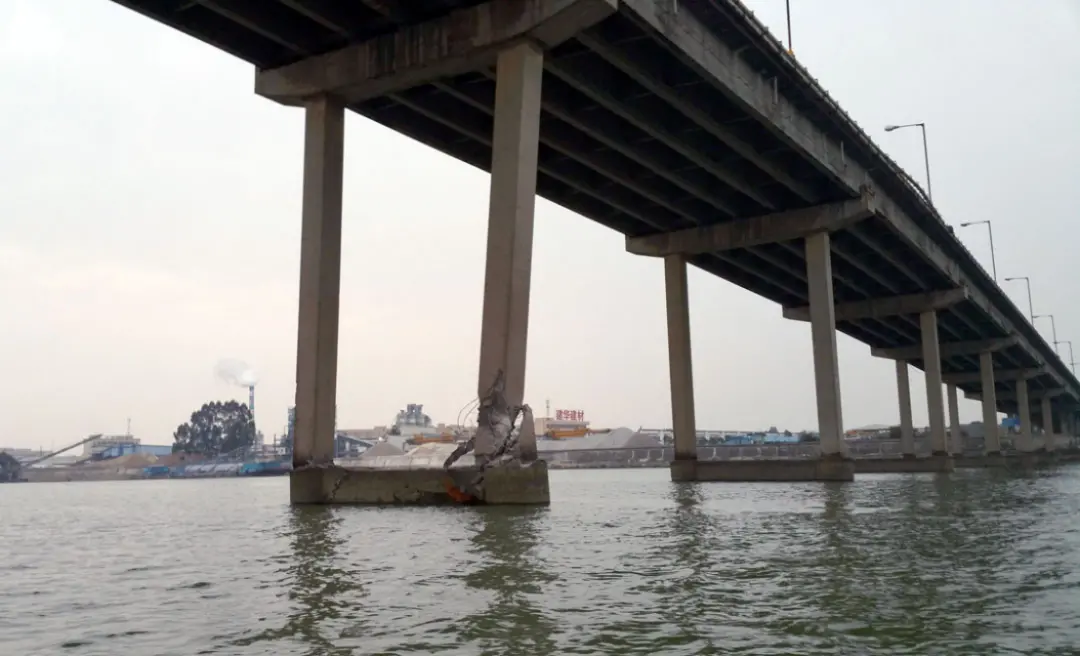 以往珠三角的几次船撞桥事故,一般轮船都是满载状态。吃水很深,干舷很低,与桥墩的碰撞点也很低。即使把一根桥墩柱子在根部切掉,也因为撞击点低,非常万幸地没有把桥墩撞歪乃至撞倒。
