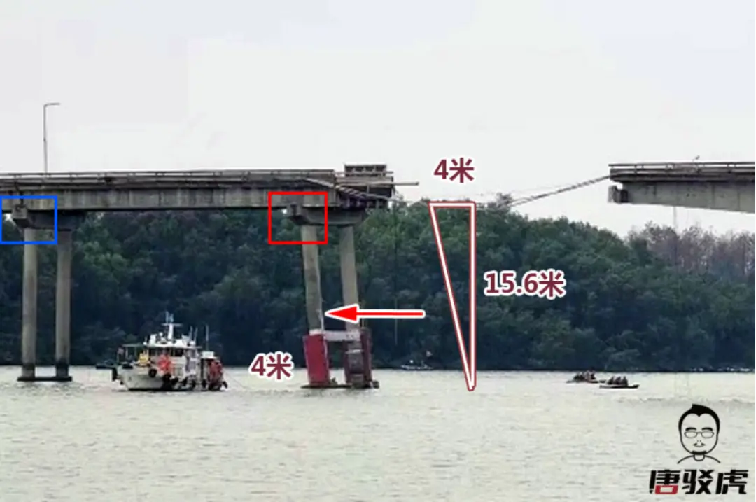 问题是船不讲武德,它撞到了细腿的柱撑。实际上不是船撞断了桥,而是船撞歪了“桥腿”。这是其一。