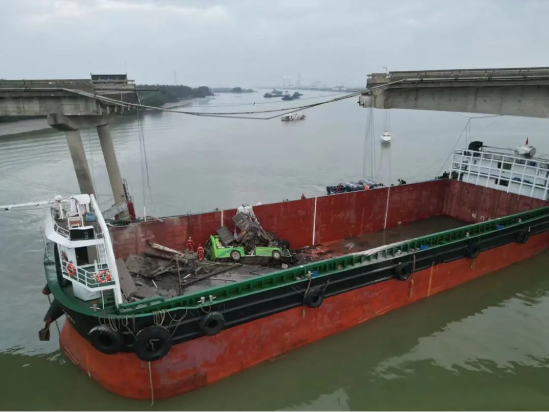 2月22日凌晨5点30分左右,一艘空载集装箱船撞上广州南沙区沥心沙大桥桥墩,导致大桥一段桥梁滑落,桥上4辆汽车、1辆电动摩托车坠落。