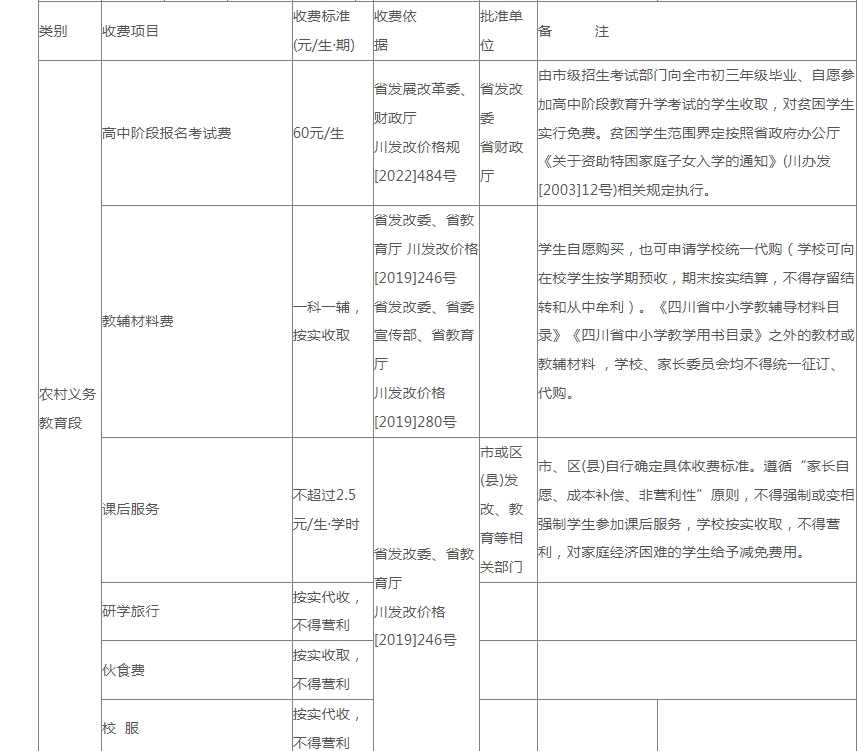 [盐都杂谈] 自贡家长注意!2024年春季公办中小学收费标准来啦