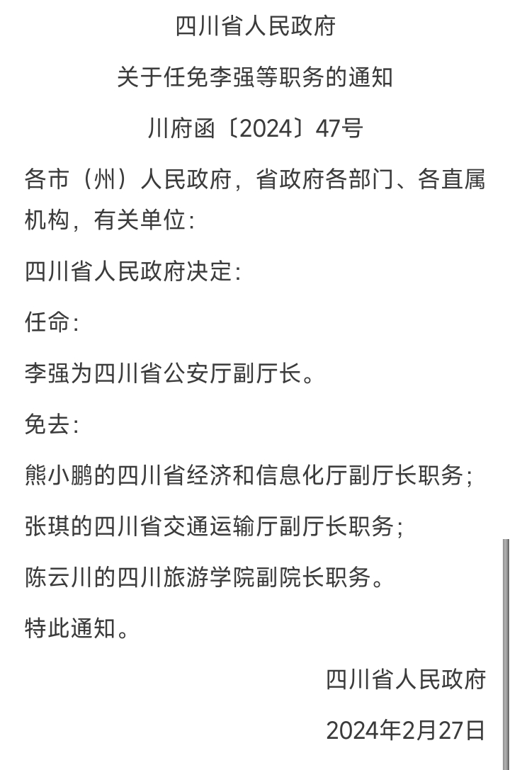 [盐都杂谈] 李强任四川省公安厅副厅长