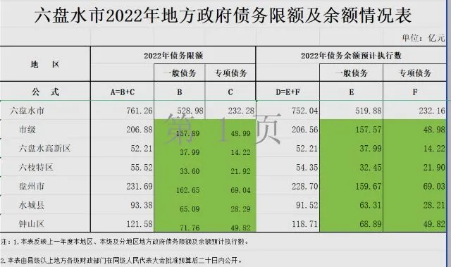 水城区所属的六盘水市总体看债务负担较重。