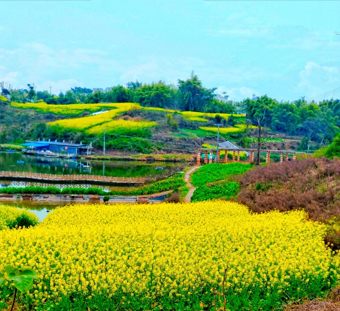 连吃几顿油菜苔,自然得歇歇气。过了一天便是正月初五。吃过午饭又带孙女出门晒太阳。电梯里遇见一个美女笑嘻嘻捧了束红玫瑰,才想起今天是二月十四号情人节。人老了,爱情是不会老的。在我的心中买玫瑰花多俗气,还费钱。于是想起了那两把油菜苔应该是花枝招展了。下午回家见到躺在菜架上的油菜苔,密密麻麻地怒放着金灿灿的小花朵甚是好看。于是拿出几个空酒瓶插上。老婆回家发现满满一桌油菜花意外的惊喜,高兴地合不拢嘴。马上给儿子儿媳微信视频炫耀。儿媳回复一张照片,同样满满一桌金灿灿的油菜花。大家笑了。