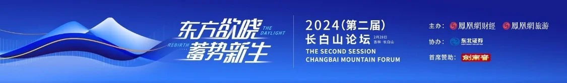 凤凰网财经讯 2月28日,第二届长白山论坛如期而至,并继续于东北地标-长白山之巅奏响经济高质量发展的“春之序章”。本届论坛以“东方欲晓 蓄势新生”为主题,由凤凰网财经、凤凰网旅游主办,东北证券协办。共话中国宏观经济的未来发展、东北振兴的新篇章等议题,深入分析、探讨和展望生机盎然的2024。