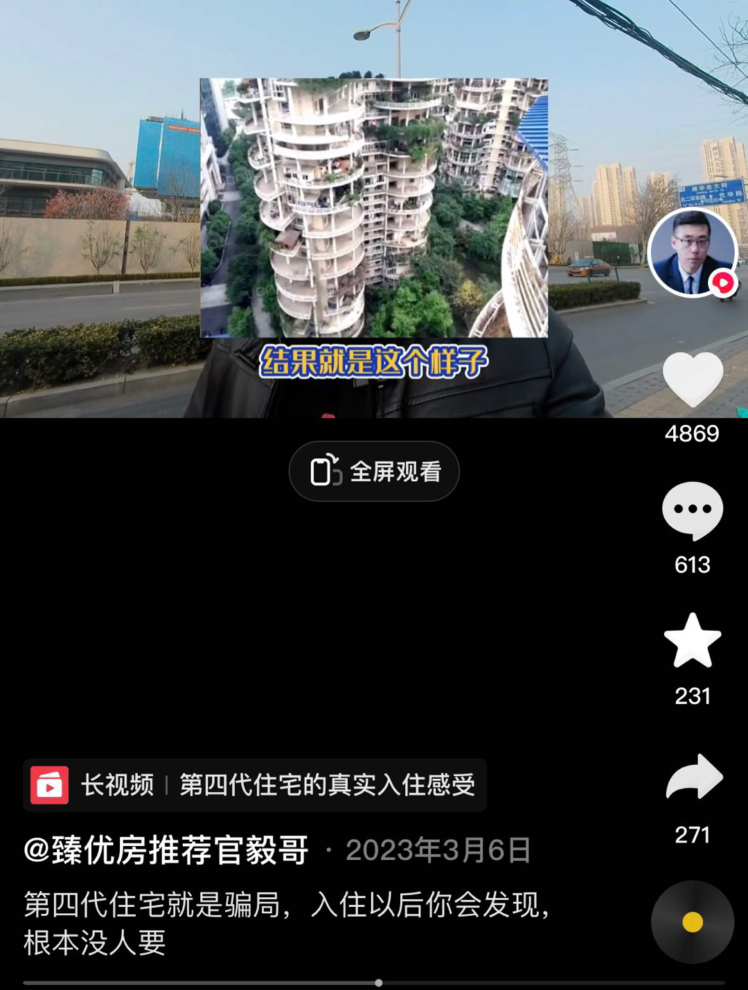 视频就是《第四代住宅买了就上当》看得我心凉了半截…花园不好打理都算了,灰还多,自贡这个天气怕是天天打扫几百遍都不够!说结构也不安全,全是挑出来的平台!安全还有隐患,风大了花盆吹下去了砸到人还要赔档!花园上面还是别个的房间,隐私性也差