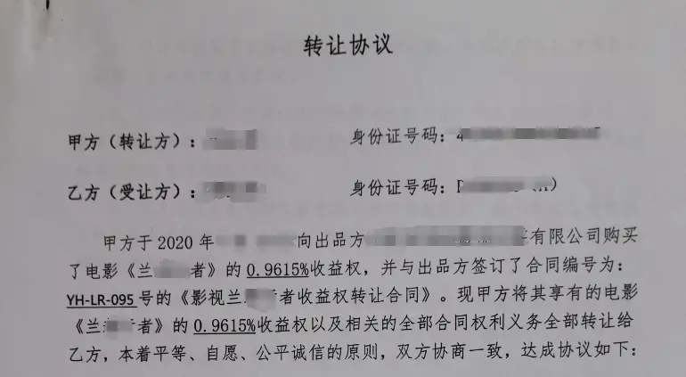 没过几天,那家公司就联系我,说我投了20万元的《兰某某者》有人愿意买,给我退了8万元。我很纳闷,《兰某某者》已经上线了,都有票房成绩了,怎么还会有人继续投资?他们给我的解释是,网大上映后有三年的收益权。