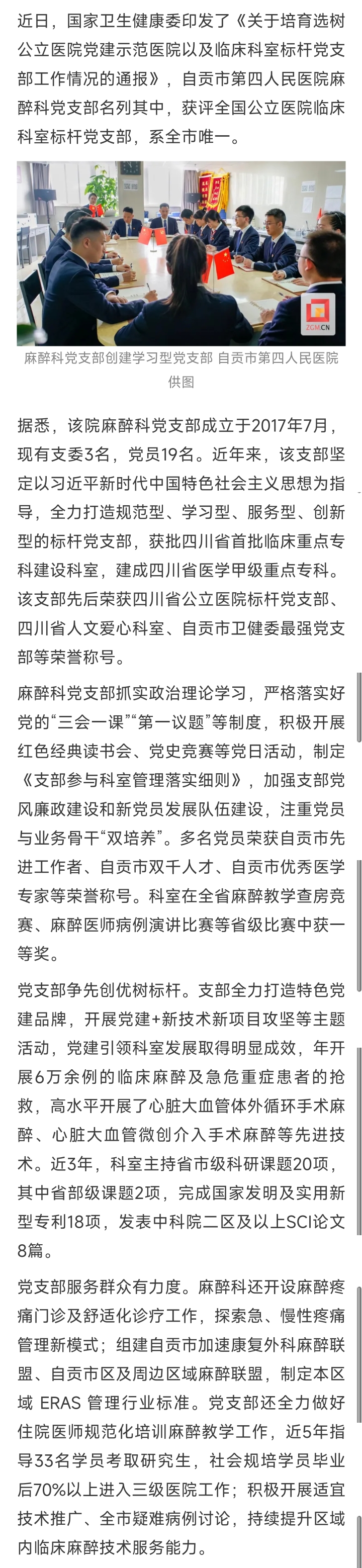 [盐都杂谈] 全市唯一!自贡市这个党支部获评全国公立医院临床科室标杆党支部