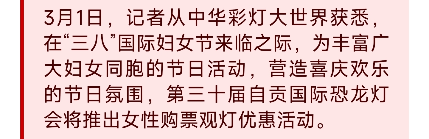 [盐都杂谈] 3月8日~3月10日 自贡灯会送“福利” 女性观灯打五折
