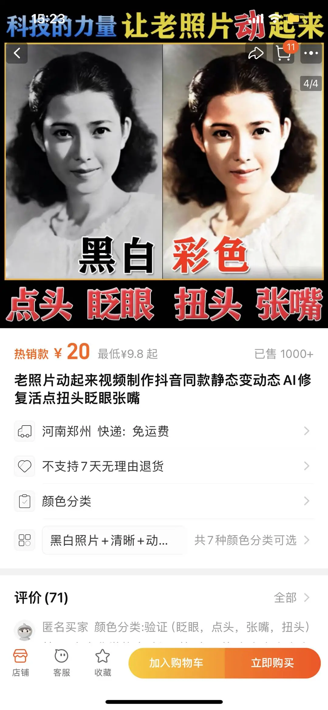 该商家表示,具体价格要根据照片和要求来定,前提是不做人脸识别,不做违法的,只做怀念。
