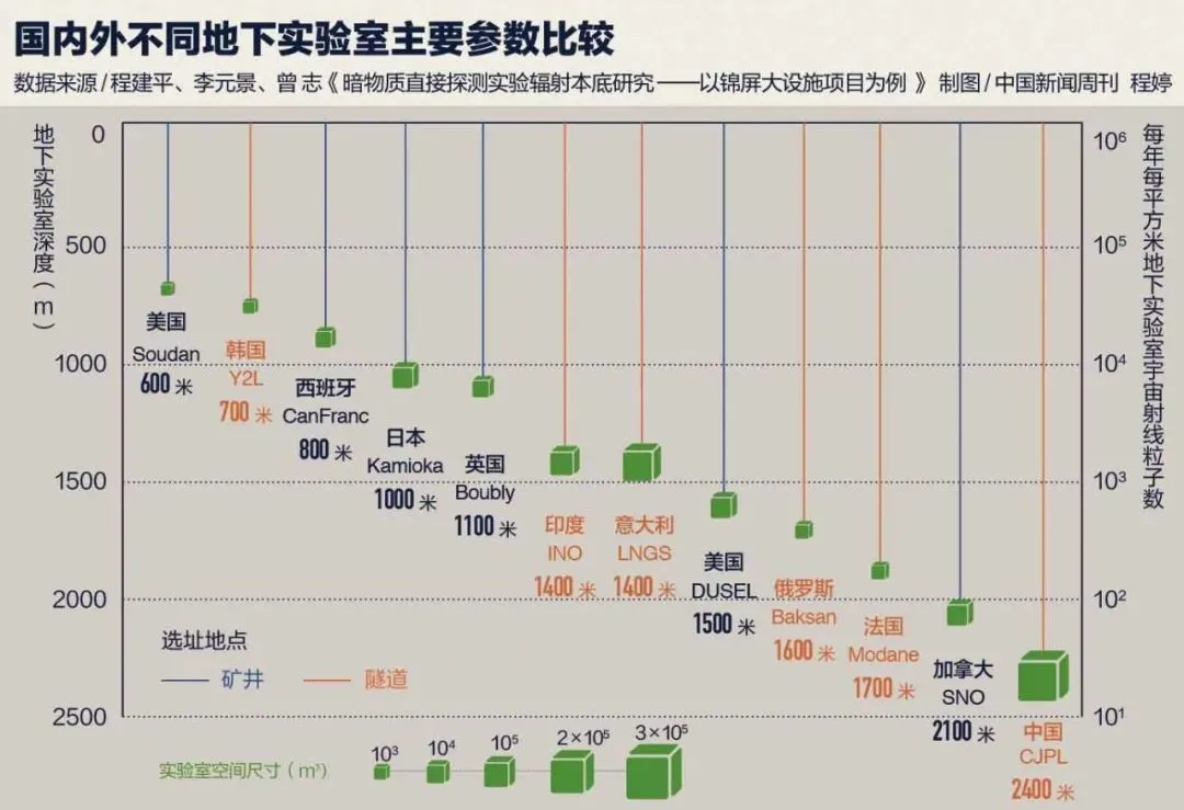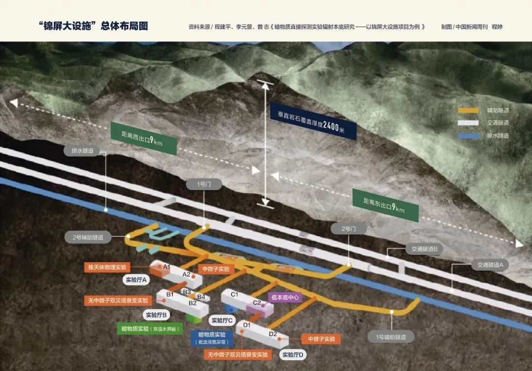 国际上地下实验室的选址无非两种:矿井或隧道。中国锦屏地下实验室主任程建平是锦屏一期、二期项目的负责人,他对《中国新闻周刊》说,在锦屏之前,中国没有自己的深地实验室,清华大学早期的暗物质实验只能借韩国实验室几平方米的空间进行。“受限于实验场所,中国的科学家只能参与别人的基础研究,无法成为主导者。”