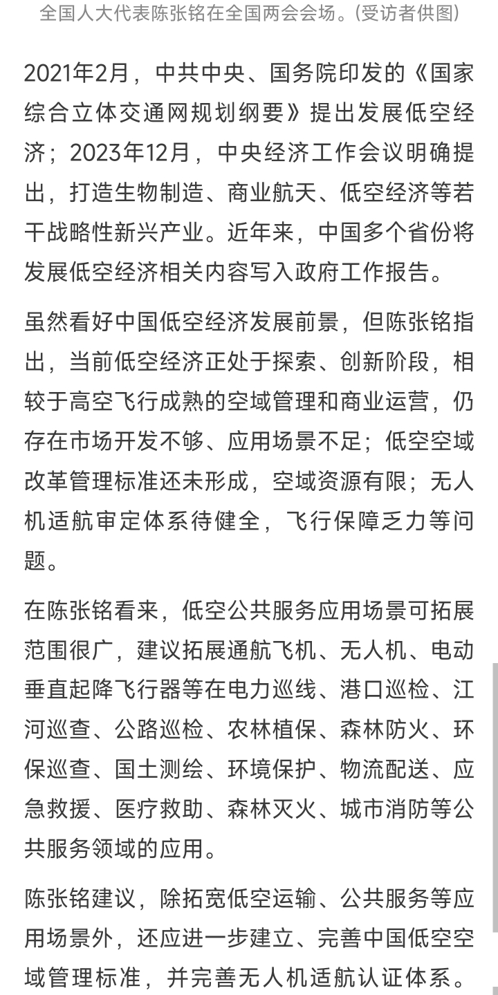 中国新闻网 自贡市副市长陈张铭:中国低空经济发展前景广阔