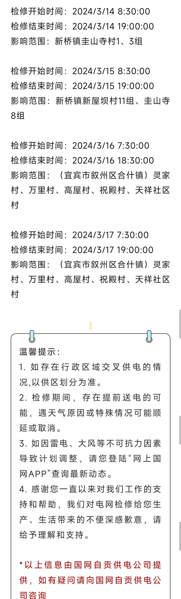 2020年9月份停电信息