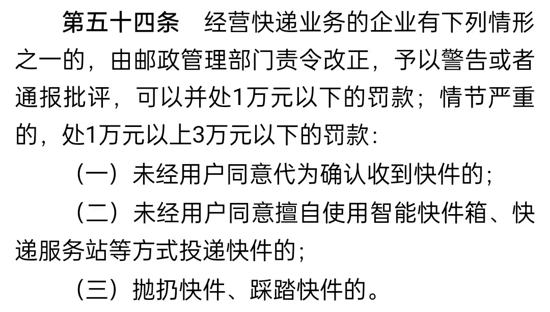 这也意味着,只要快递员没有送货上门,消费者就有权利通过向邮政部门投诉,给予快递员处罚。