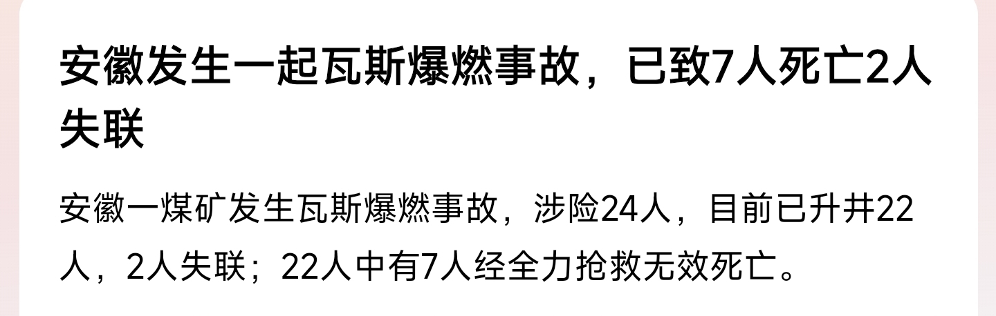 [盐都杂谈] 安徽1煤矿瓦斯爆炸致7死2失联