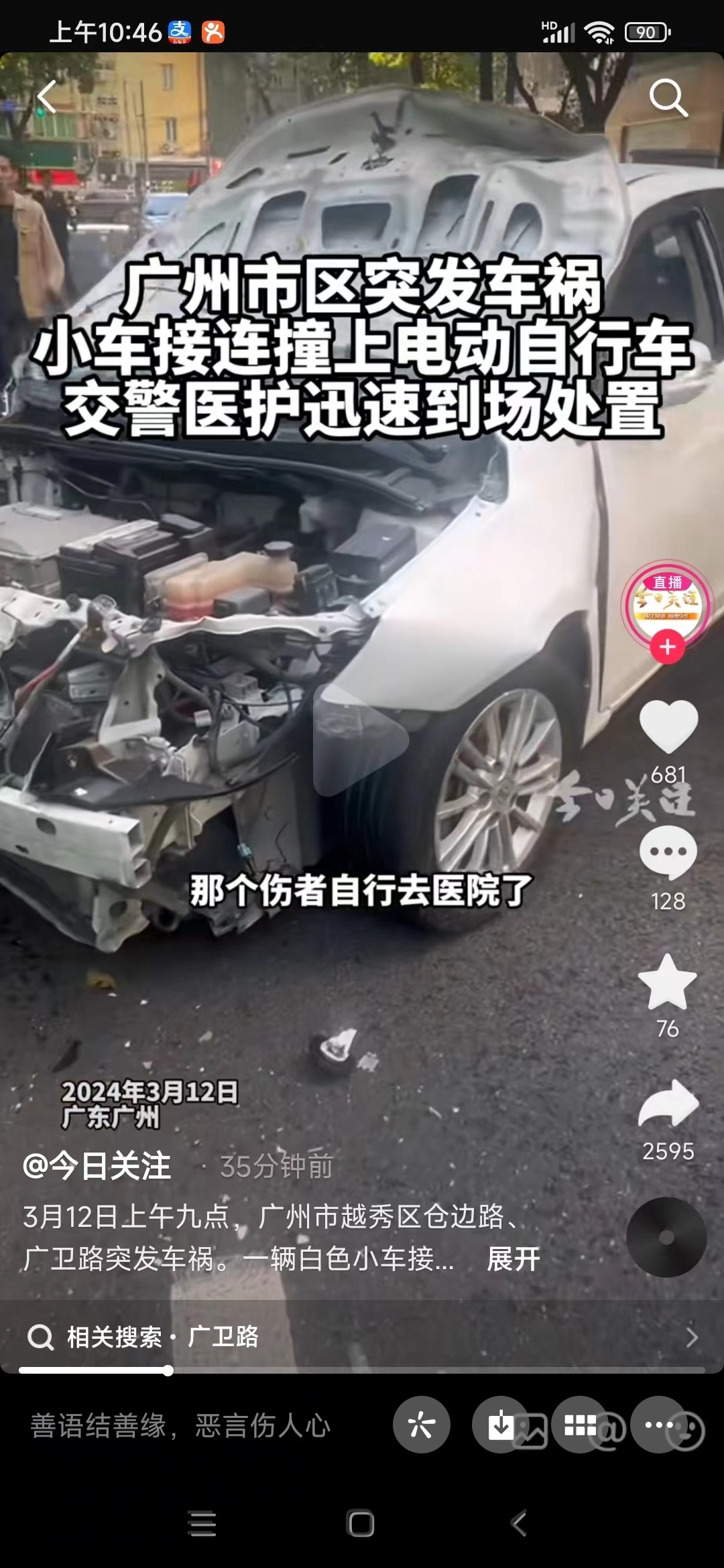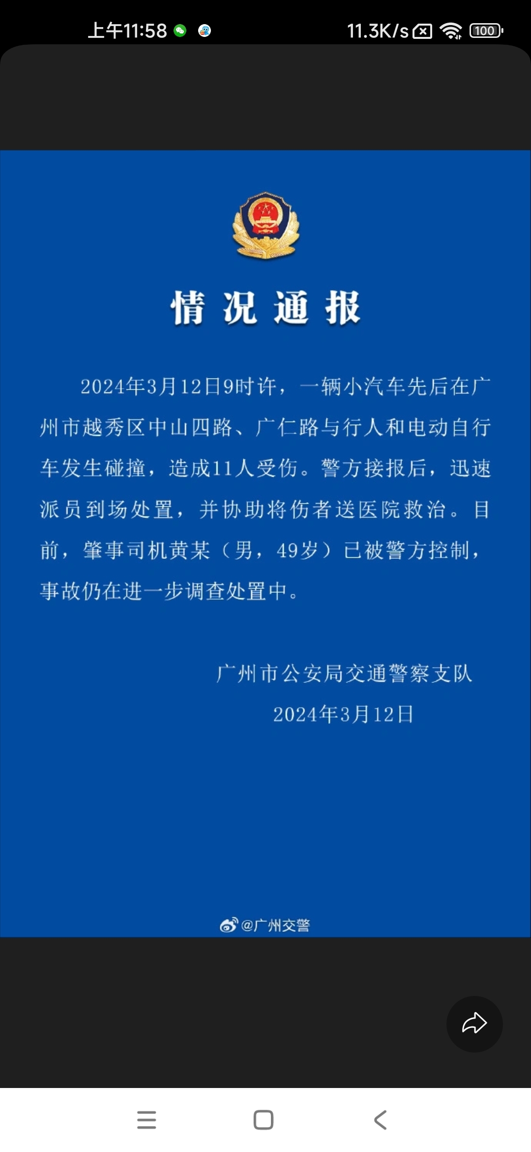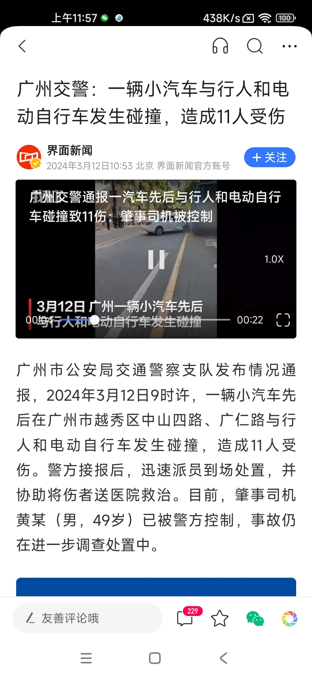 车祸发生距离比较长,一路撞过去,后续等警方通报。