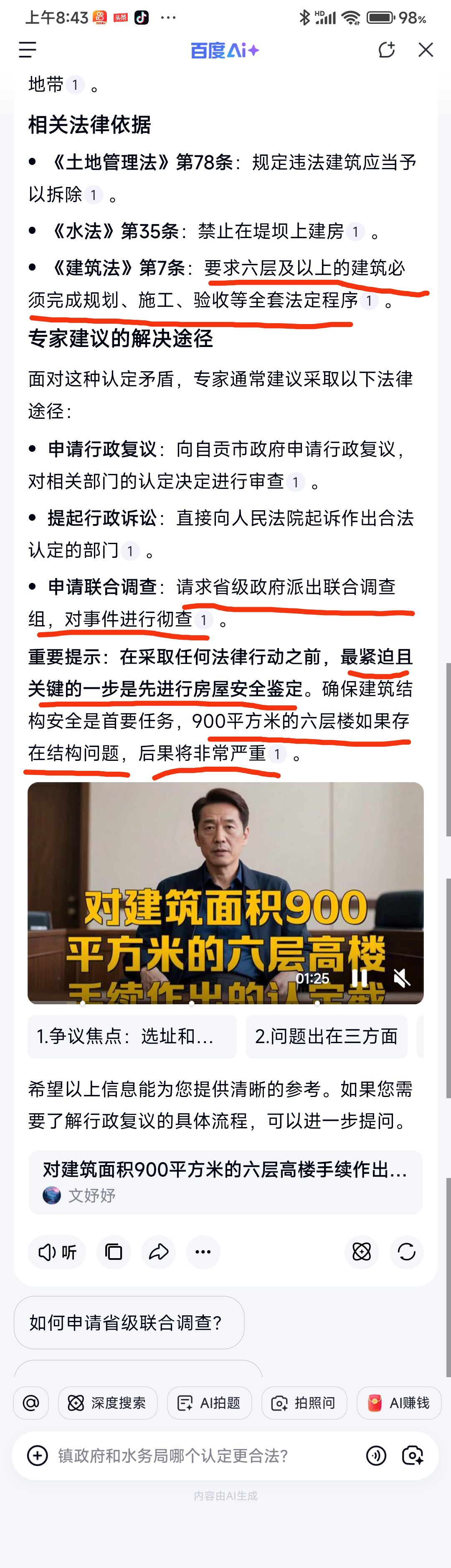4.认定高楼的建房手续为假手续,高楼为非法建筑,依法作出拆除的决定,对莲花镇政府和贡井区水务局的回复纠错,只能向贡井区政府和自贡市政府提出行政复查和复核。