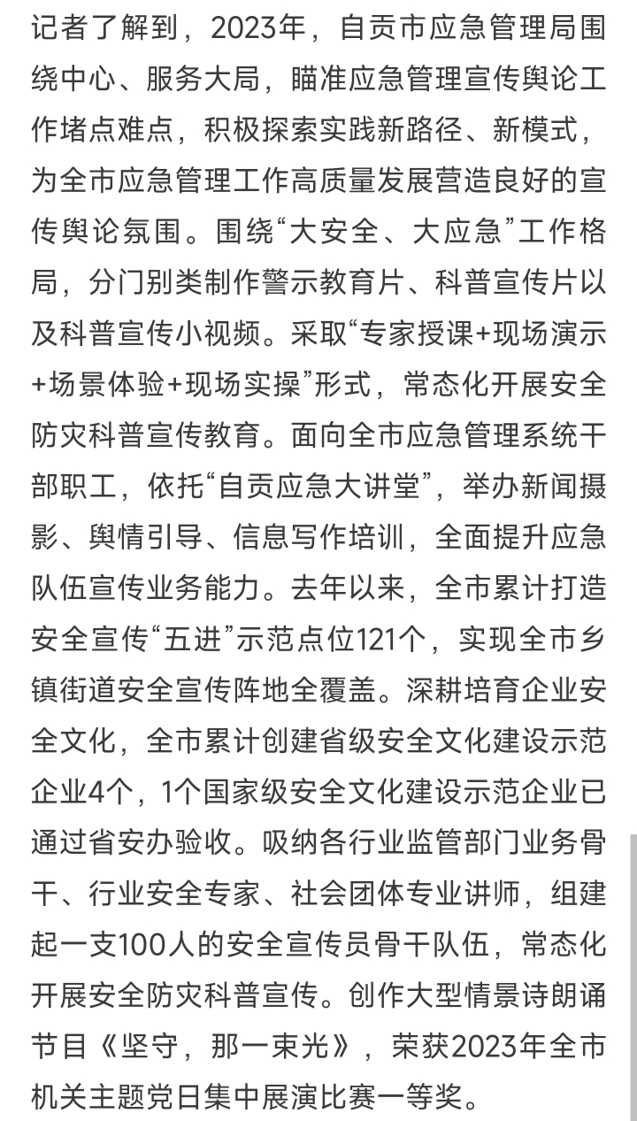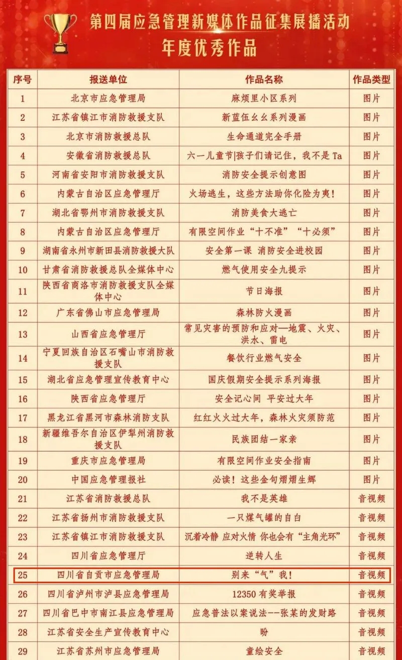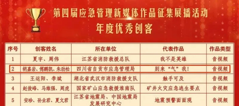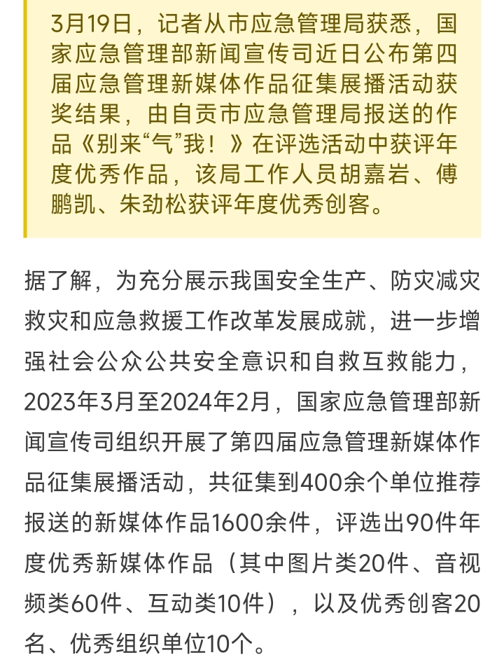 自贡市应急管理局新媒体作品入选国家应急管理部年度优秀作品名单