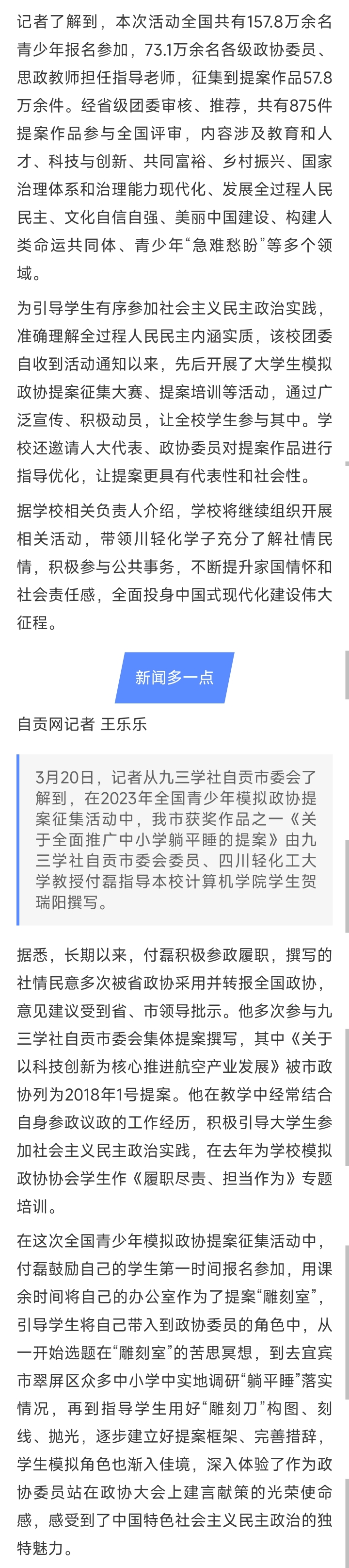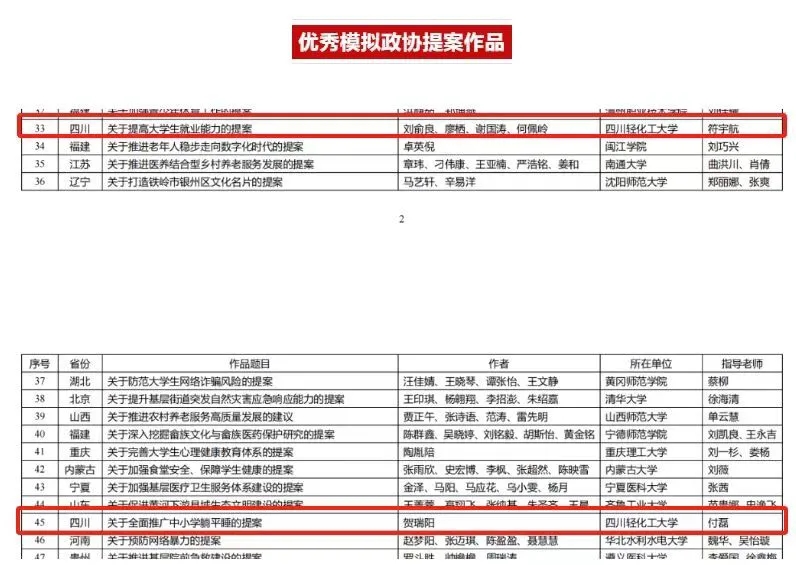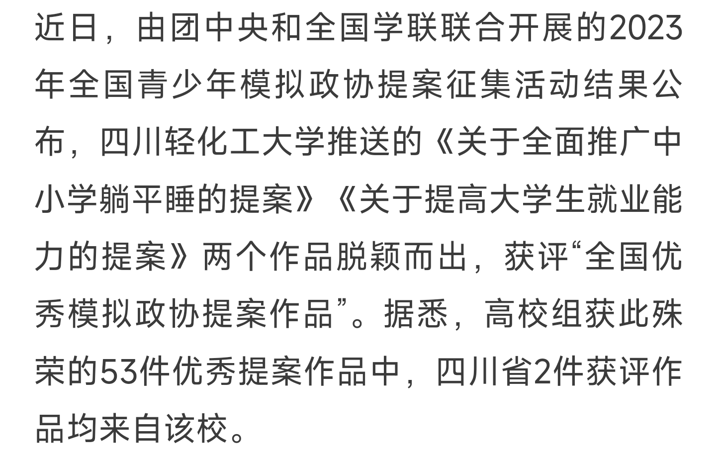 [盐都杂谈] 全省高校唯一!四川轻化工大学学子两件作品获2023年全国青少年模拟政协提案奖