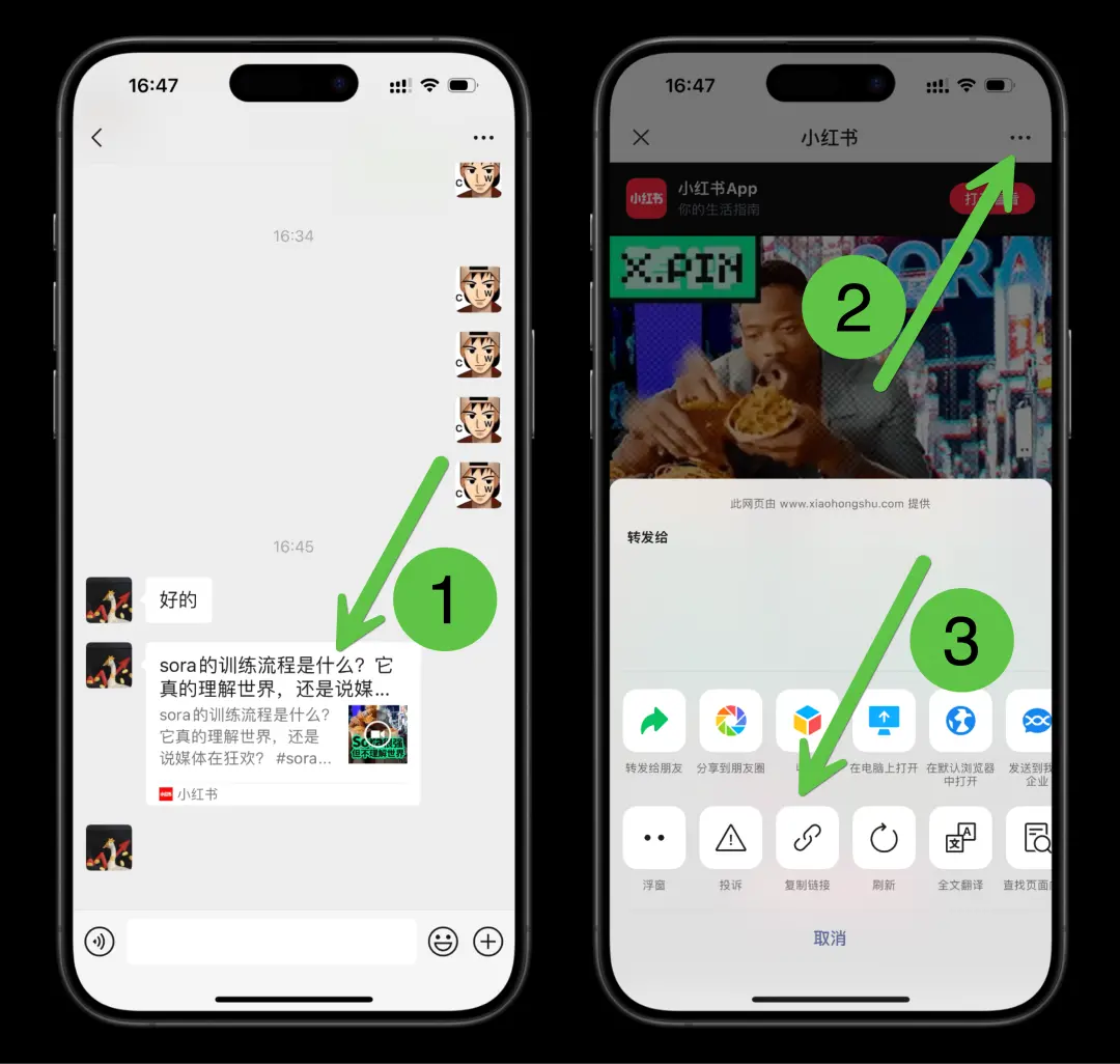 有朋友转发了一个小红书帖子,我点进去按右上角 ··· ,然后复制链接。