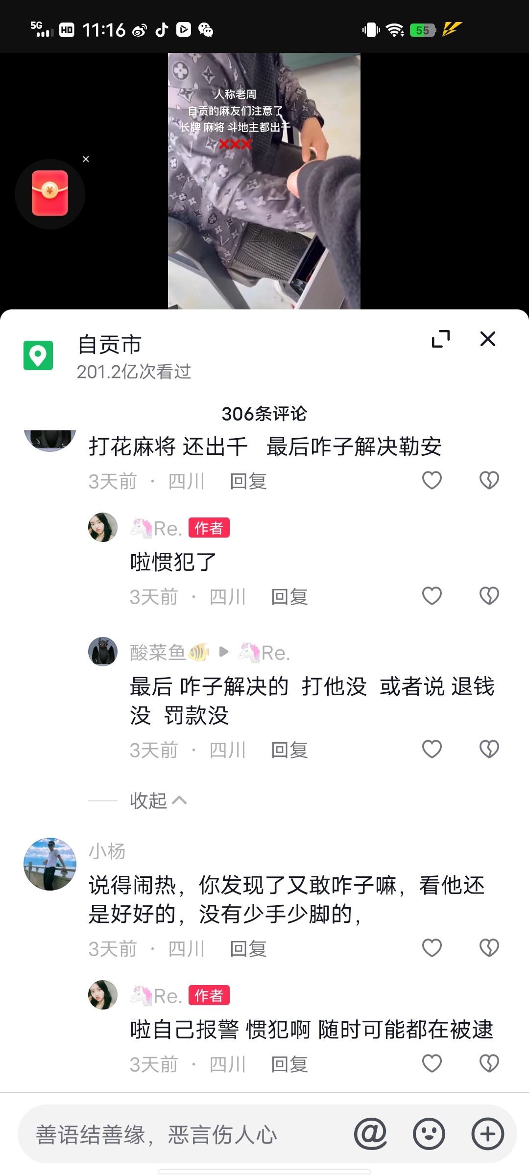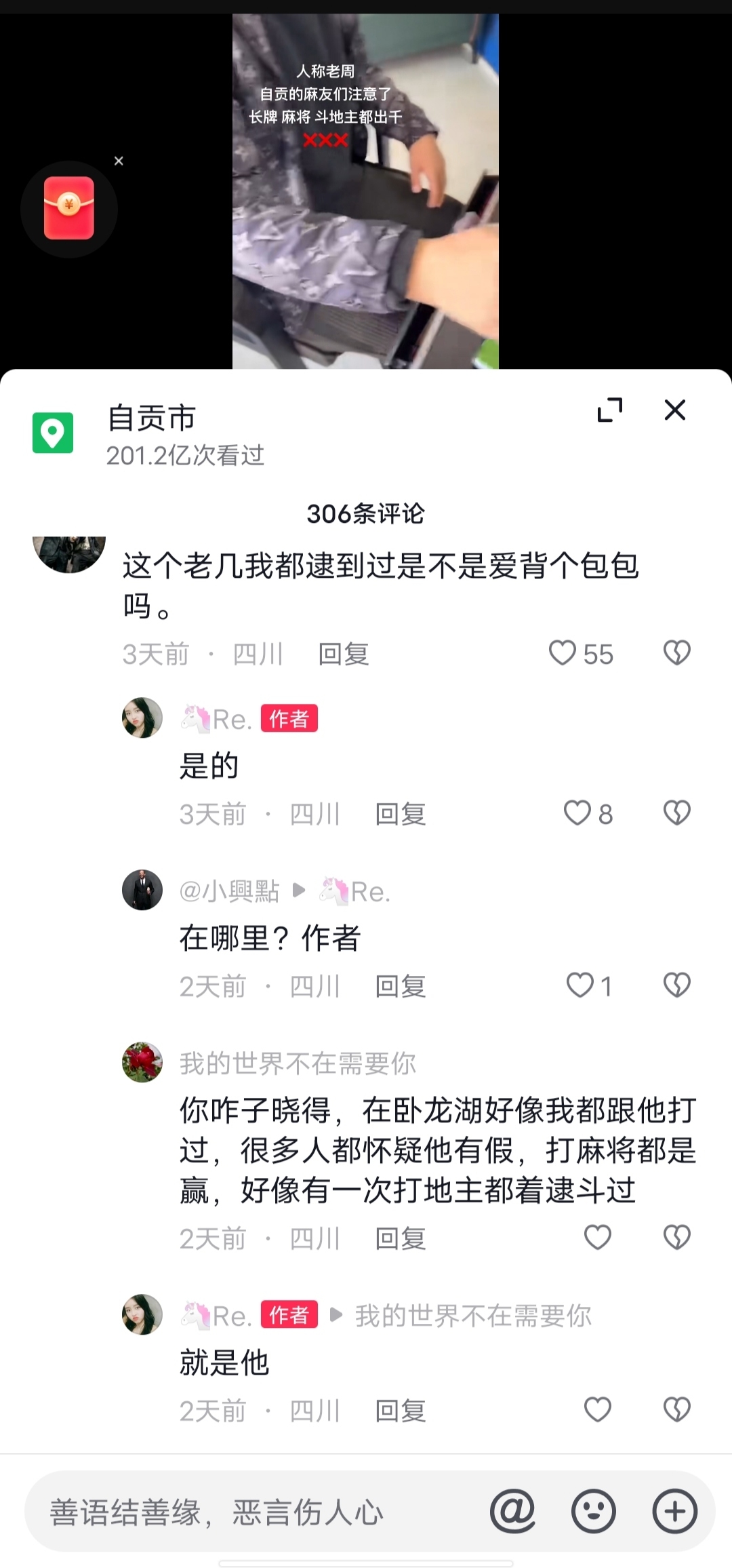 自贡出千老头 有两个名字 一个老周 一个老魏 五十来岁 有点荣县口音 大家多多注意