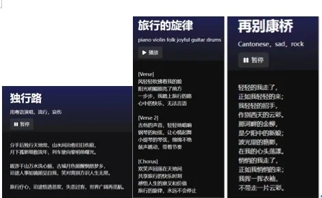 记者随后让通义千问生成一段关于"失恋后自己旅行并表述旅行感受和人生思考"的歌词,将歌词输入Suno,音乐风格输入"粤语,流行,哀伤",大约一分钟生成歌曲并可播放。此次生成的歌曲曲风依然流畅,但仍是用普通话演唱。记者将提示词改为英语,并输入《再别康桥》作为歌词,这次AI终于在前几句用粤语歌唱,但马上又变成了普通话演唱。