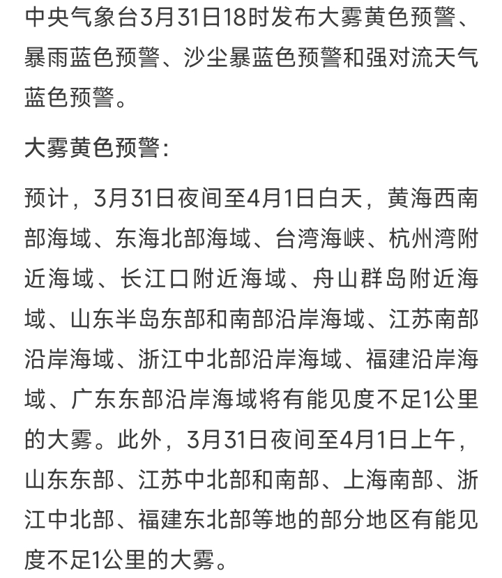 [盐都杂谈] 大雾、暴雨、沙尘暴、强对流 中央气象台四预警齐发!