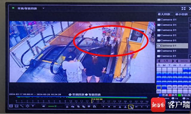 3月25日下午,记者来到海口府城明洋商场了解情况,查看事发当天的视频监控看到,郭女士乘电梯上行至约第六七层阶梯时,扶手带疑出现停滞。此时,电梯则继续正常上行,面对突发意外情况,老人惊慌之下未能立即松手,而是仍然紧握扶手带,致使身体重心失衡,接连向后退步,身体向后倾斜最终跌倒从电梯上滚落。事发后,视频中一名男子迅速赶来,将电梯关停。