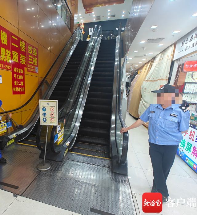 3月24日中午1时许,今年60多岁的郭女士独自来到海口府城明洋商场,从一楼乘用通往二楼的自动扶梯时,因扶梯的扶手带卡顿,与电梯运行速度不一致出现意外,郭女士当场从梯上跌落受伤。