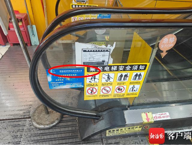 涉事电梯上公示的24小时维修服务电话显示,维保单位为海南澳普斯顿电梯有限公司。