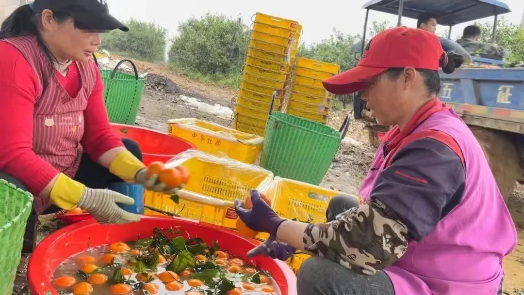 在记者暗访调查中发现,当地沃柑经采摘后会被送到洗果厂,进行清洗、打蜡并浸泡抑菌农药保鲜。而在浸泡过程中,会混合使用多种抑菌农药,浸泡后的沃柑并未按照存储安全间隔期,而是直接送往市场销售。