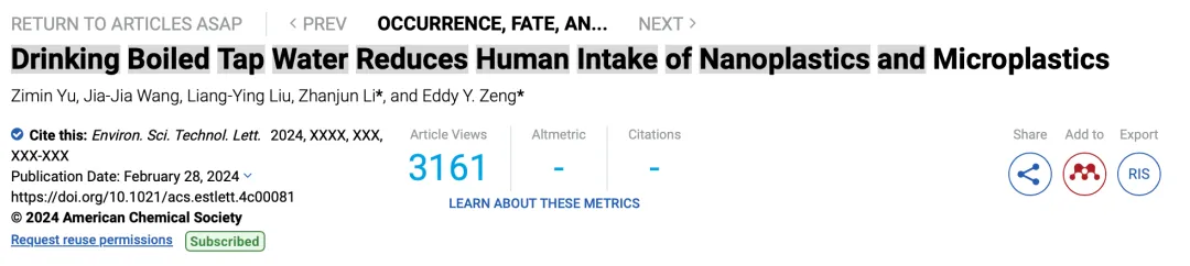 近日,来自广州医科大学和暨南大学联合开展的研究揭示了“喝温开水”的重大健康意义——煮沸硬水能有效去除至少80%的纳米塑料/微塑料(NMPs),堪称最为简单且无害的“净化”自来水方式, 从而减少人类通过饮水所致的NMPs摄入量。