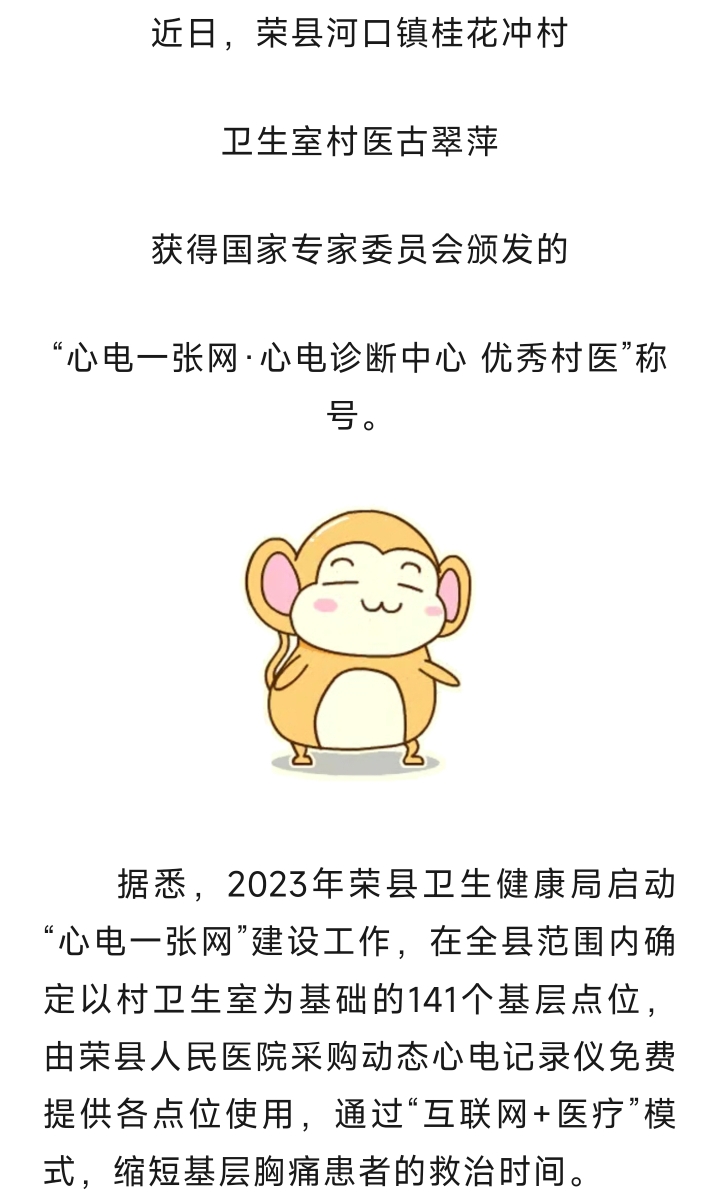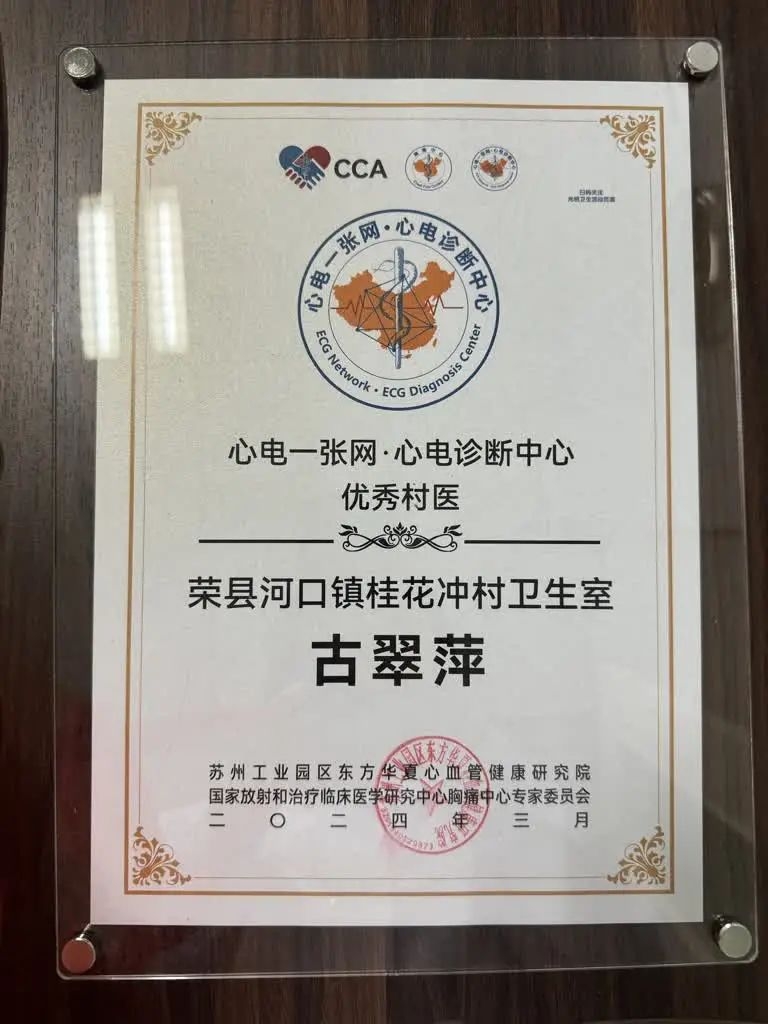[盐都杂谈] 荣县桂花冲村村医古翠萍获国家专家委员会“心电一张网-心电诊断中心 优秀村医”称号