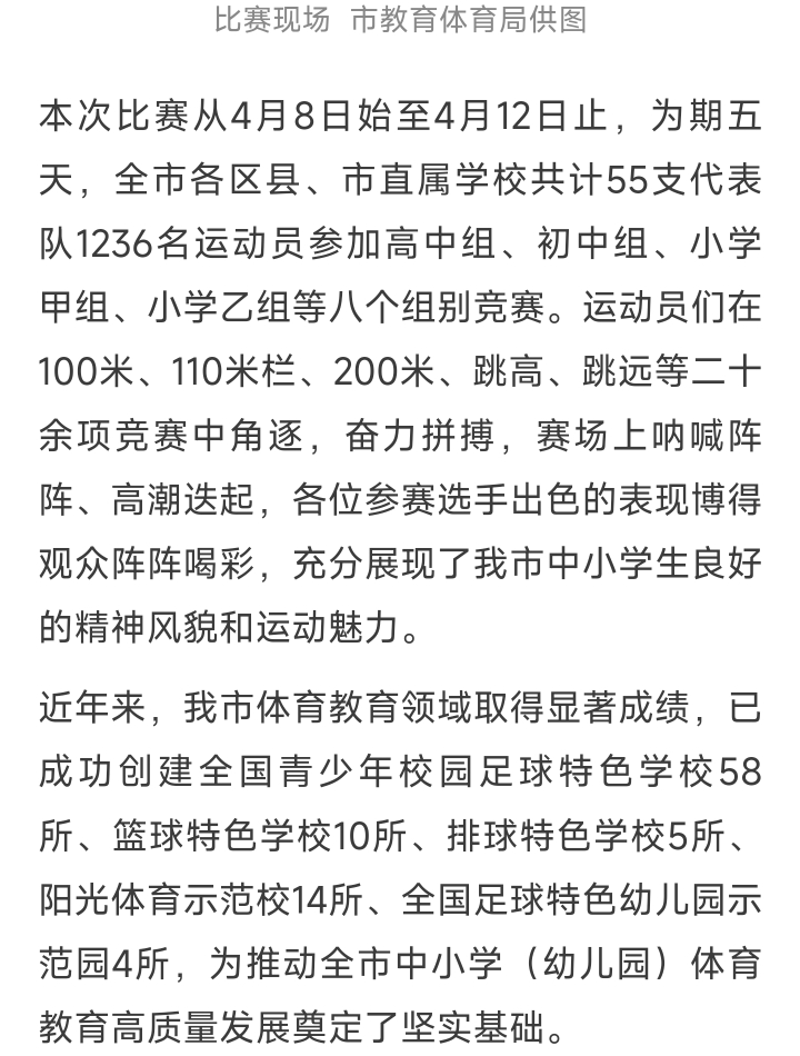 [盐都杂谈] 2024年自贡市中小学生田径锦标赛在南湖体育中心鸣枪开跑