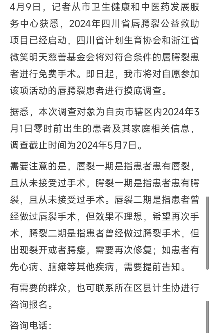 [盐都杂谈] 2024年四川省唇腭裂公益救助项目启动