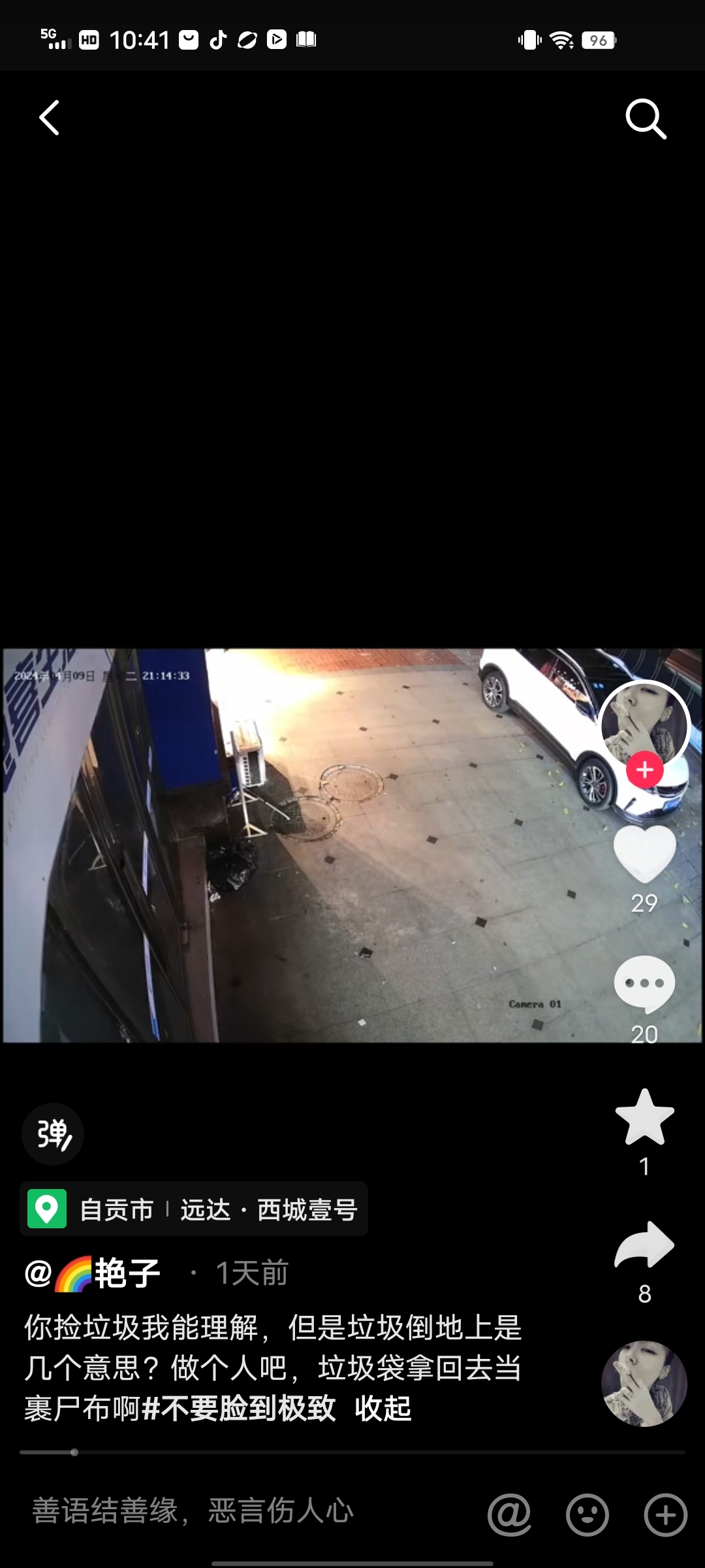 太离谱了!别个装了垃圾的垃圾袋放在门口,结果把垃圾给别人倒门口,垃圾袋拿走了,不脏吗?