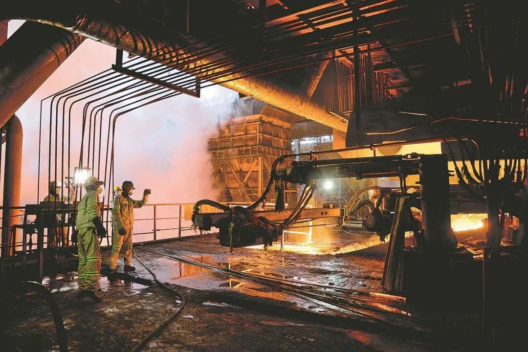 工人在镍铁生产线上工作/图源:新华社