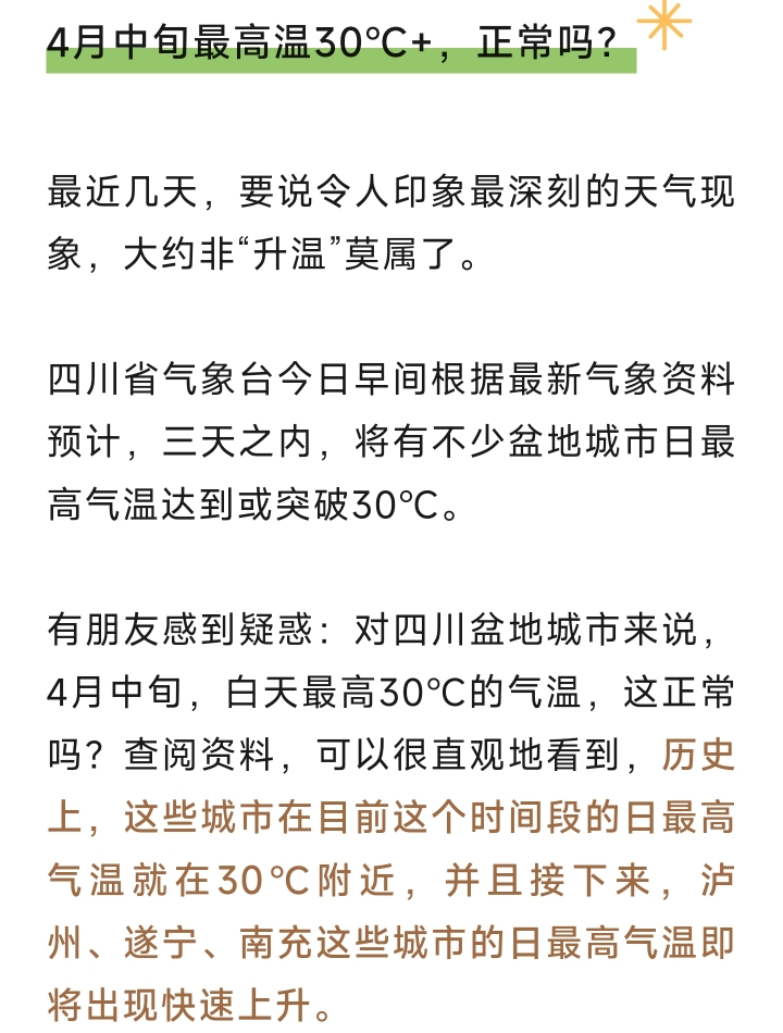 热!热!热!自贡直冲30℃,才4月中旬,这天气正常吗?