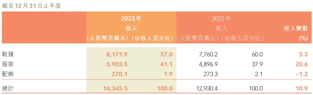 虽然2023年鞋履业务创下了新高,但营收增幅只有5.3%,不仅大幅度落后于服装业务的20.6%,和集团整体营收增速10.9%相比也有一定的差距。