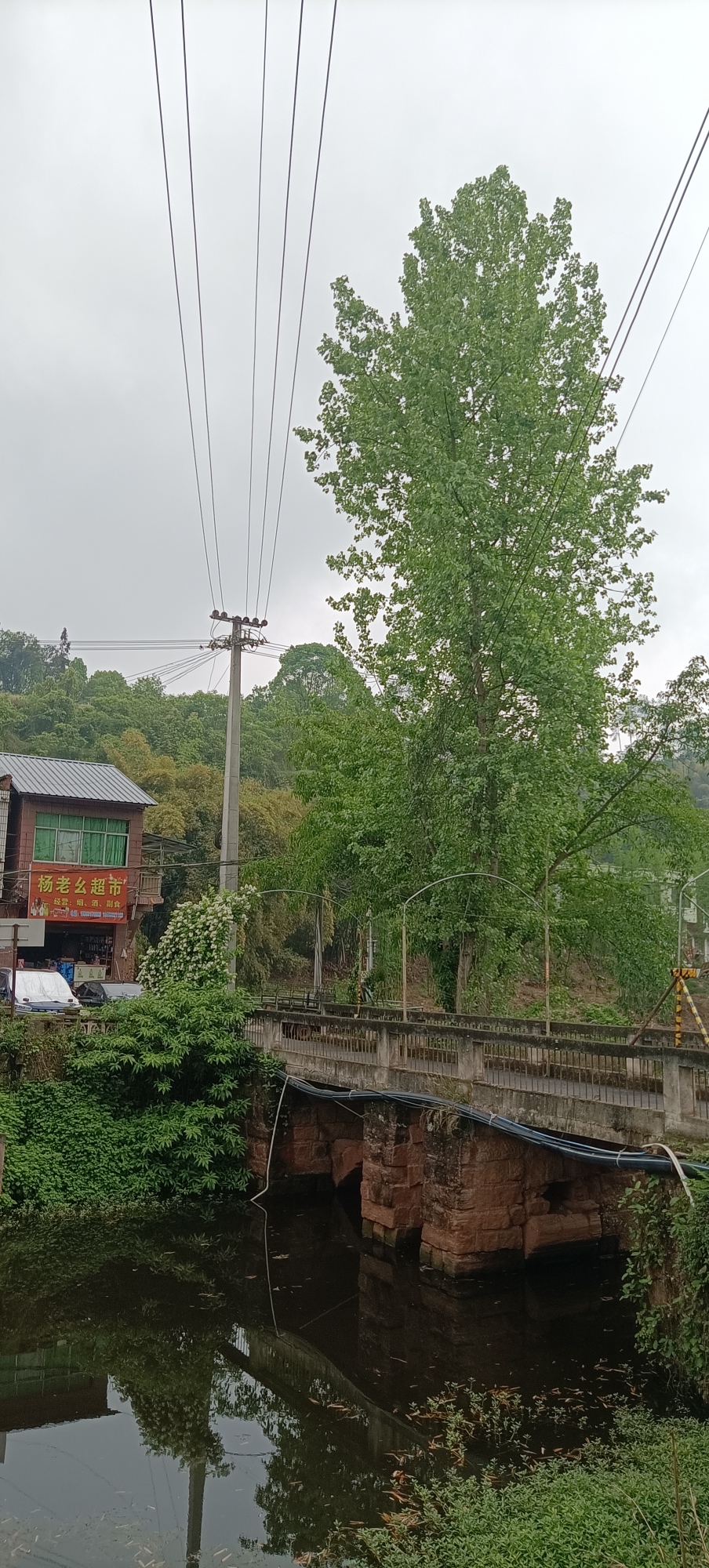 贡井区莲花镇牛尾河社区相会街小桥头,高压电线傍有一棵又高又大的树,遇大风有危及高压线的危险!