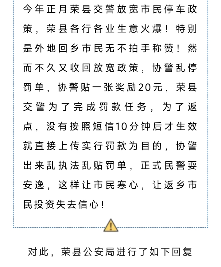 留言称“荣县协警乱贴罚单”