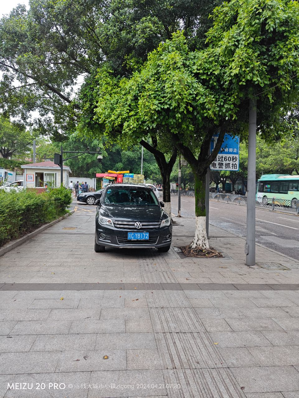居然在标识牌下公然反抗但好像牌子上只能管理公路上不能管理人行道。经常有车这样停,上次在APP举报居然喊联系当地交警,帖子能举报吗,如果能这样停车以后就没有必要发这样的帖子了以免浪费资源。