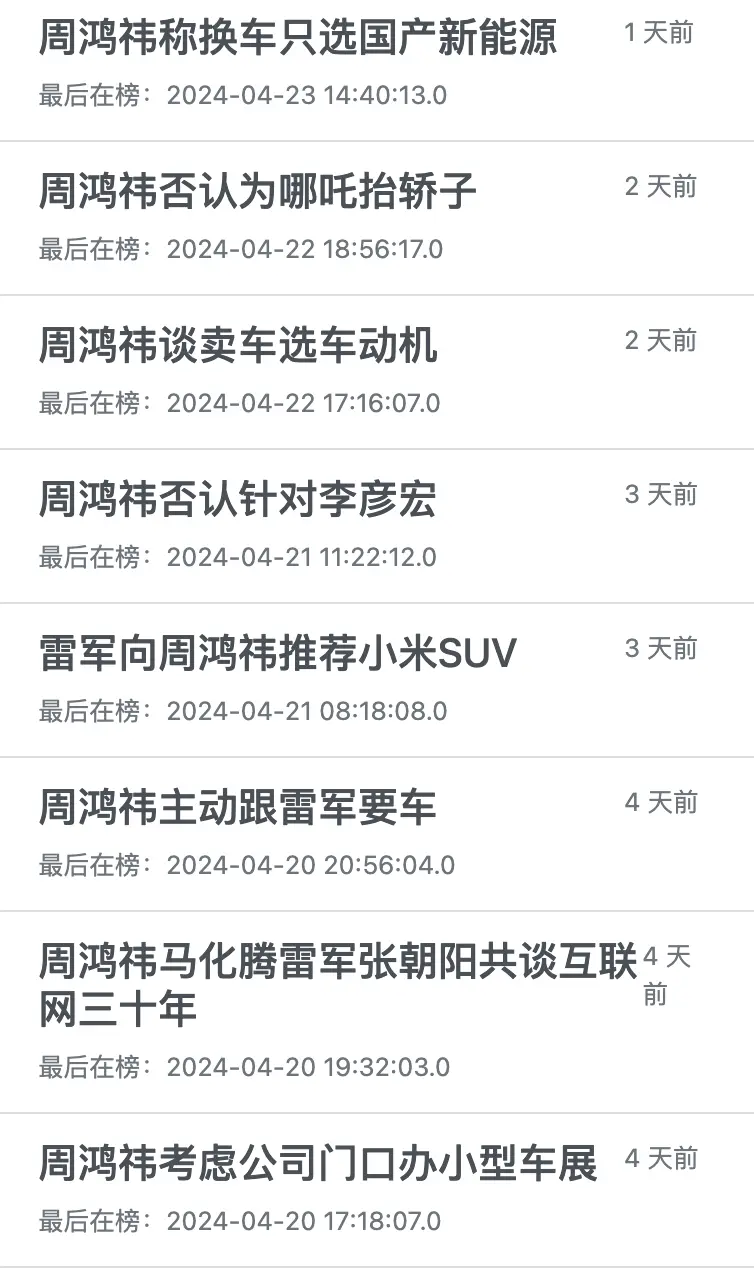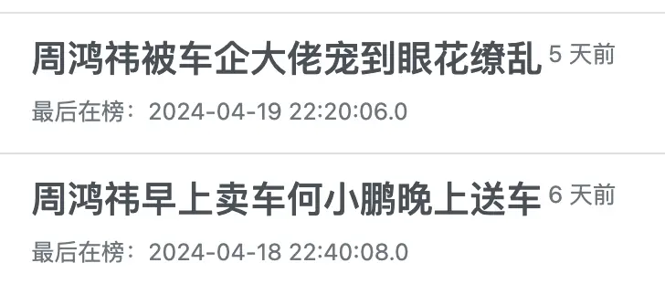 “ 周鸿祎和马化腾握手 ” , “ 周鸿祎问雷军要小米 SU7 ” 。