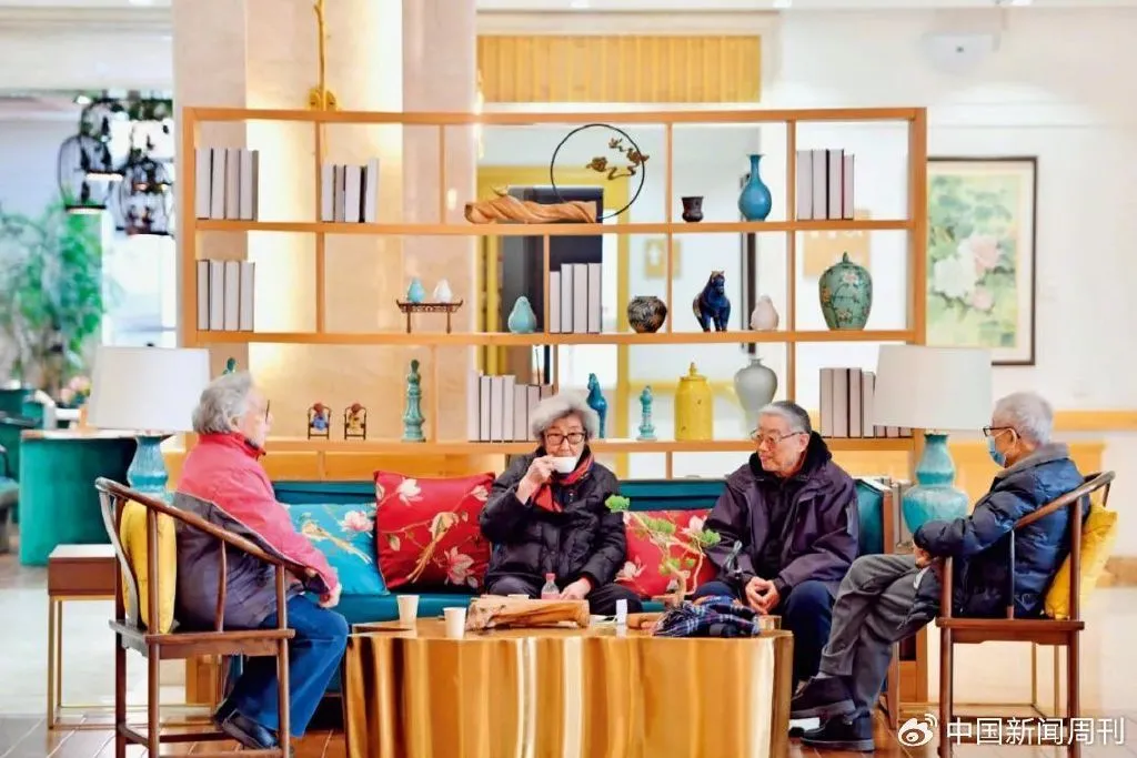 2月28日,老年人在河北廊坊市香河县大爱书院养老中心活动室休息。目前,该中心有600余名老人入住,其中约90%的老人来自北京。图/新华