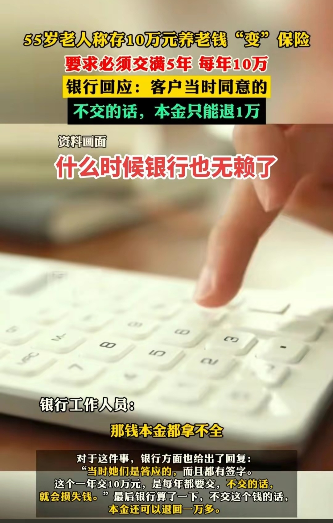 但是很多在签订协议的时候基本都不会去看那些密密麻麻的条款,稀里糊涂的就签订了协议,普通存款变成了购买保险,钱也取不出来要等到多少年以后,如果没到期取的话本金都会少一大半甚至只有一点点,前两年闹得可多了,但是应该还有一些没发现的,回家问问你家的老年人吧,这年头钱不好挣可别被骗了。