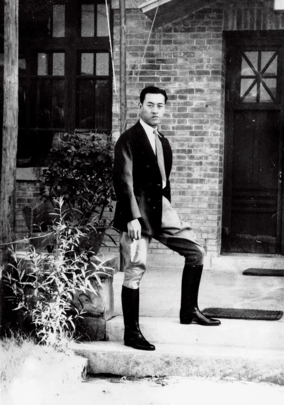 上世纪30年代,陈岱孙在清华新林院3号寓所前。图/受访者提供