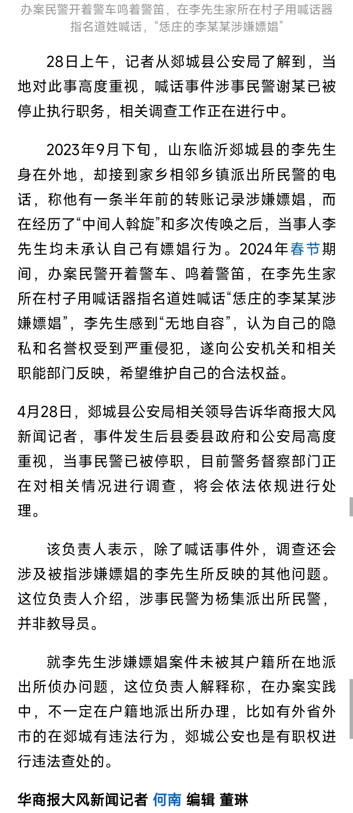 [盐都杂谈] 警车进村喊话“恁庄李某某涉嫌嫖娼”追踪:涉事民警已停职