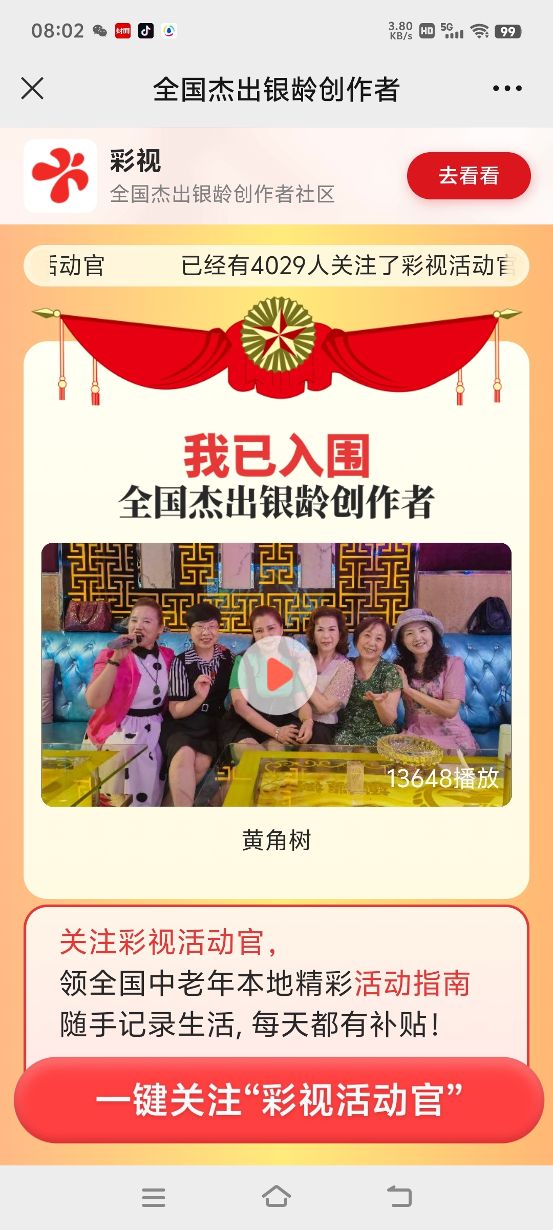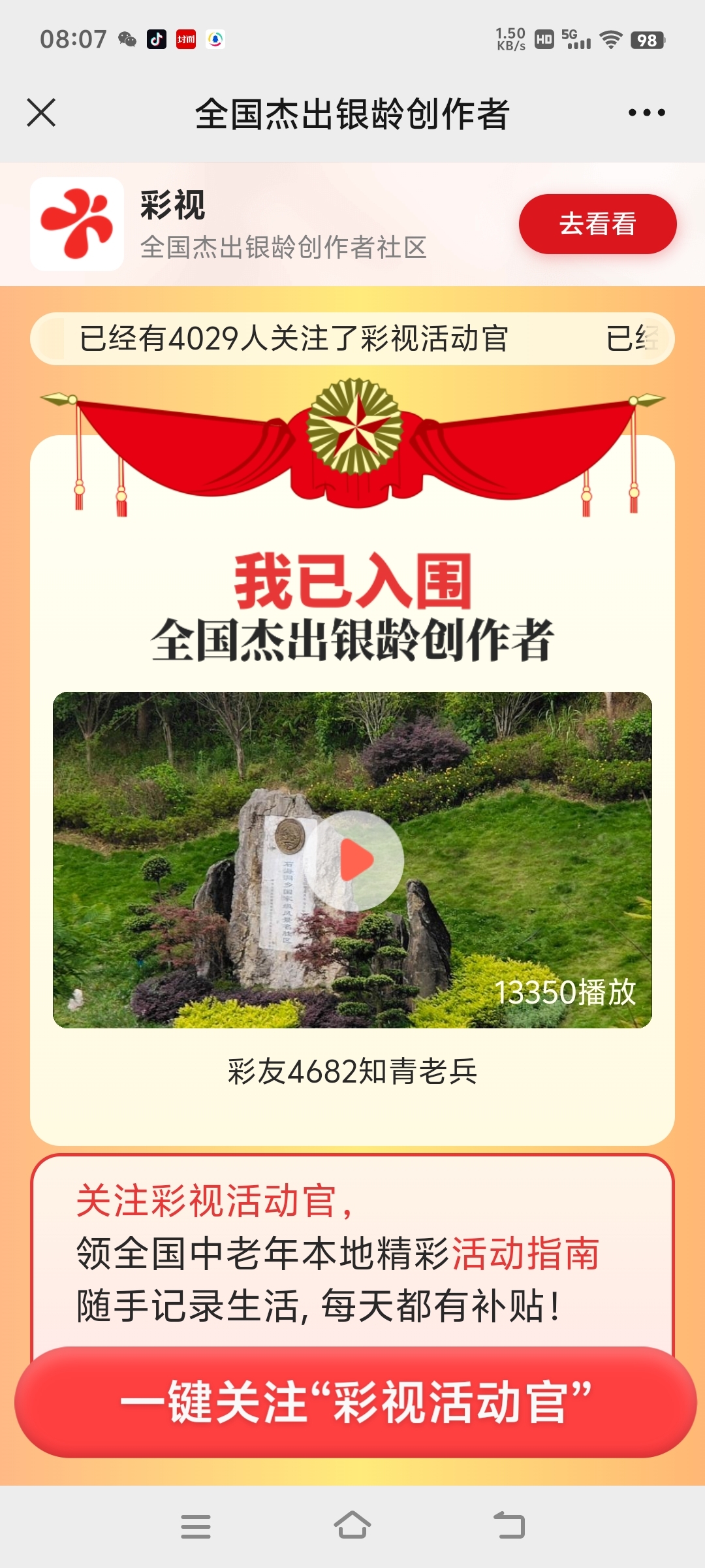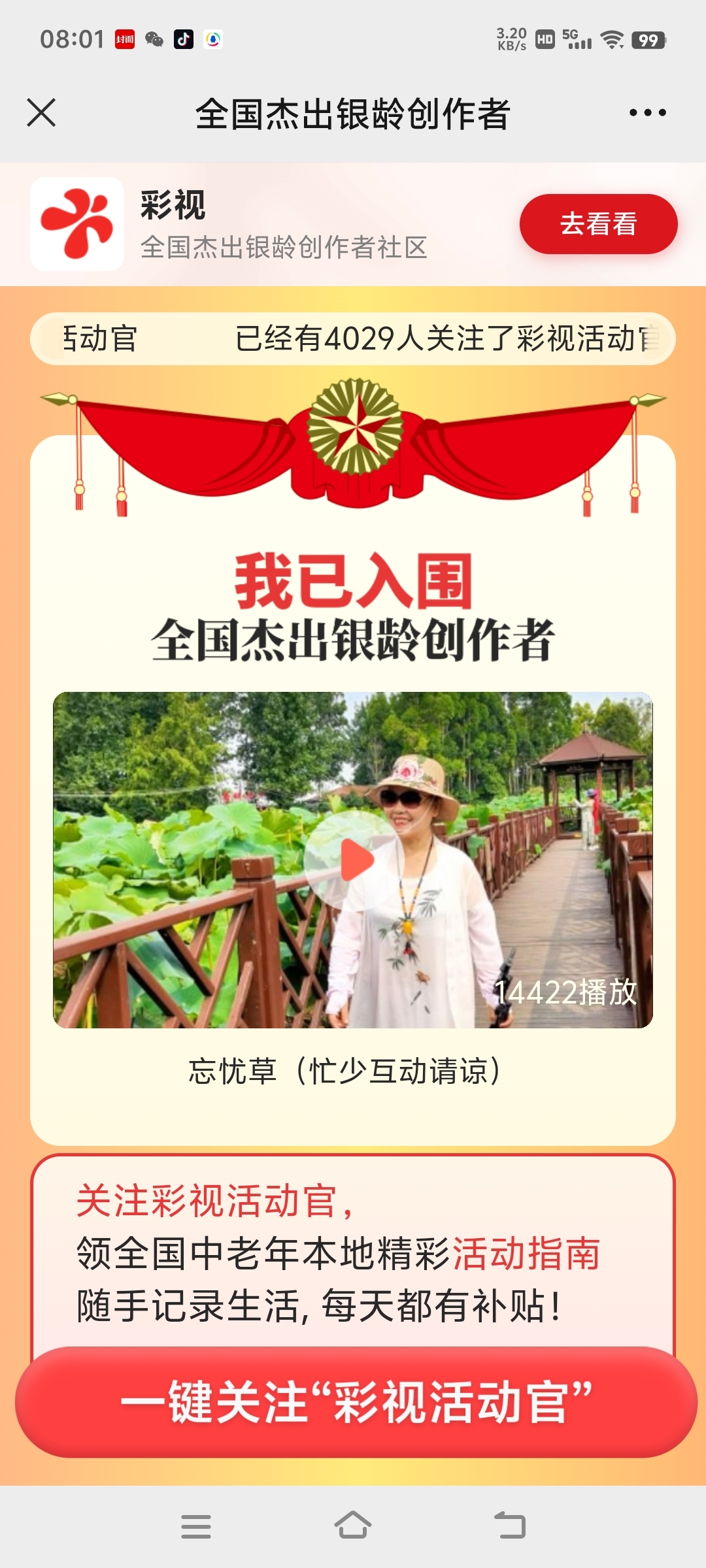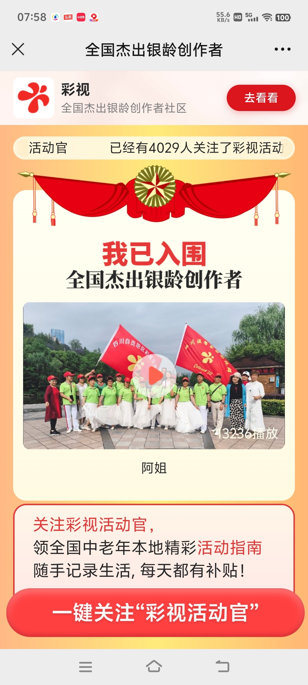 4月28日彩视总部发佈“彩视全国銀龄创作者入围奖”,对爱好彩视创作的彩友们是很大的鼓励,彩友们不負总部期望,将继续努力创作出更多更好的优秀作品。
