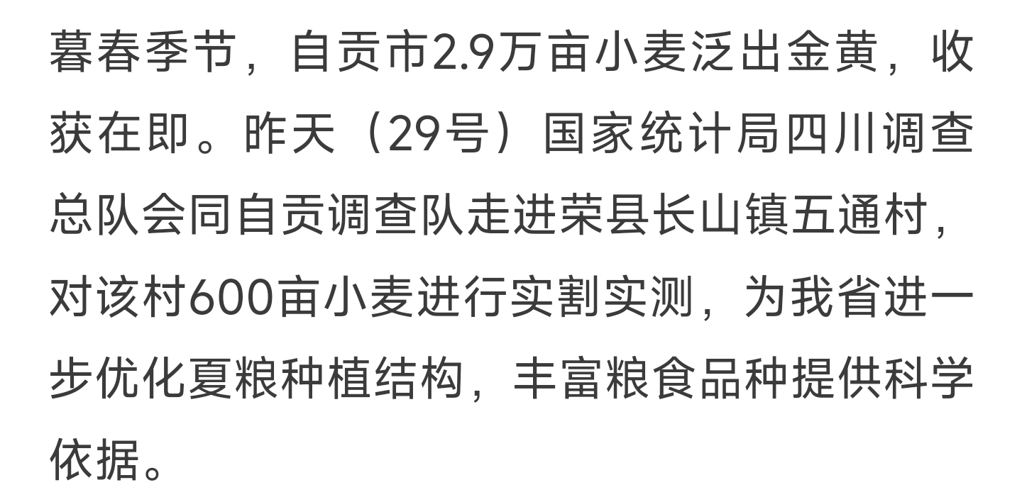 [盐都杂谈] 自贡:2.9万亩小麦亩测产325公斤 收获在即