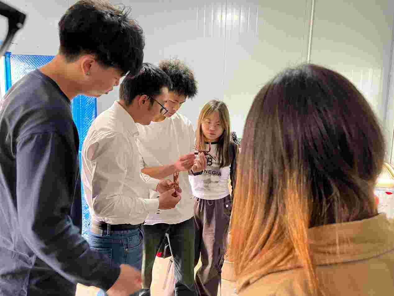 接着,两所学院的同学又来到了大岩虾塘。大岩虾塘水域广阔,水质清澈,养殖设施完善,虾塘负责人向师生们介绍了大岩当地小龙虾的养殖技术、市场前景以及未来发展规划,让同学们更加深入的了解到虾的养殖和经营模式。