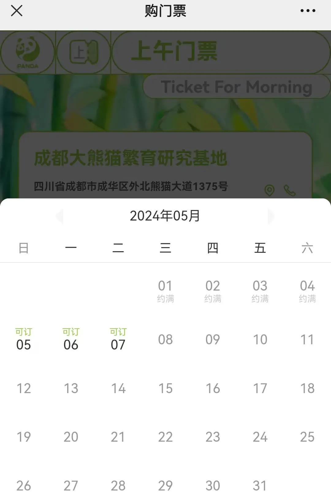熊猫谷景区 5月1日-4日全天门票已售罄